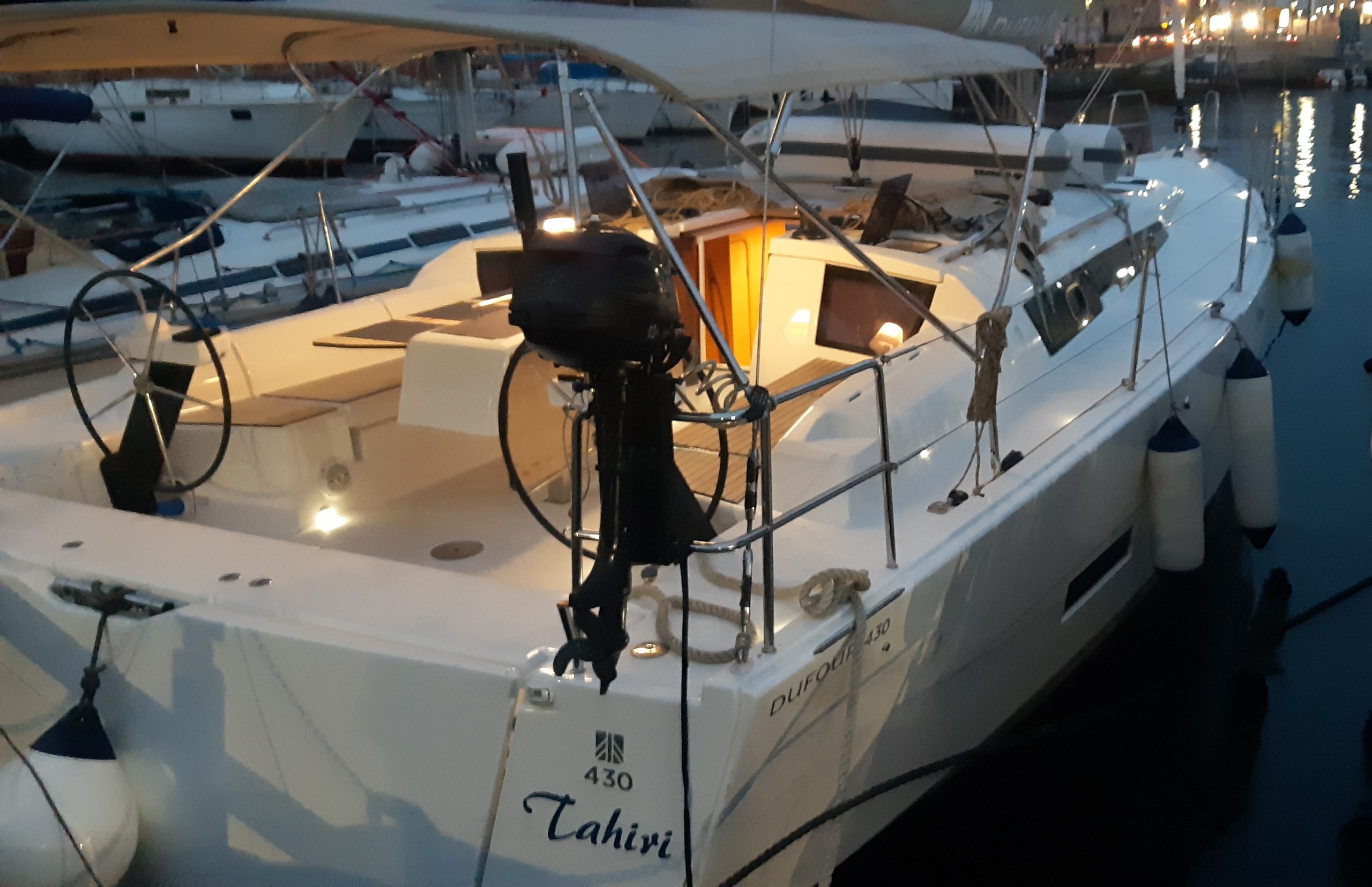 A charter sailboat the Dofour 430, fast and easy to sail even with a small crew and in any weather condition. Its tall rig mast with the batten main sail and the deep keel (2,13 mt) provides a great stability and a proven ability upwind.