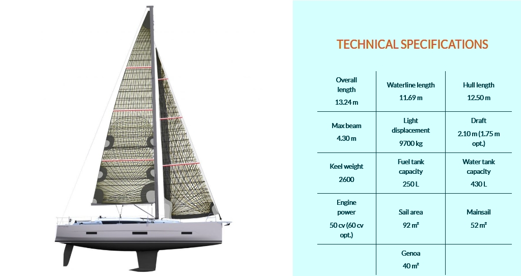 A gennaker is available on demand to give intense emotions even with light winds.